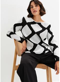 Gebreide, gemêleerde trui met ronde hals